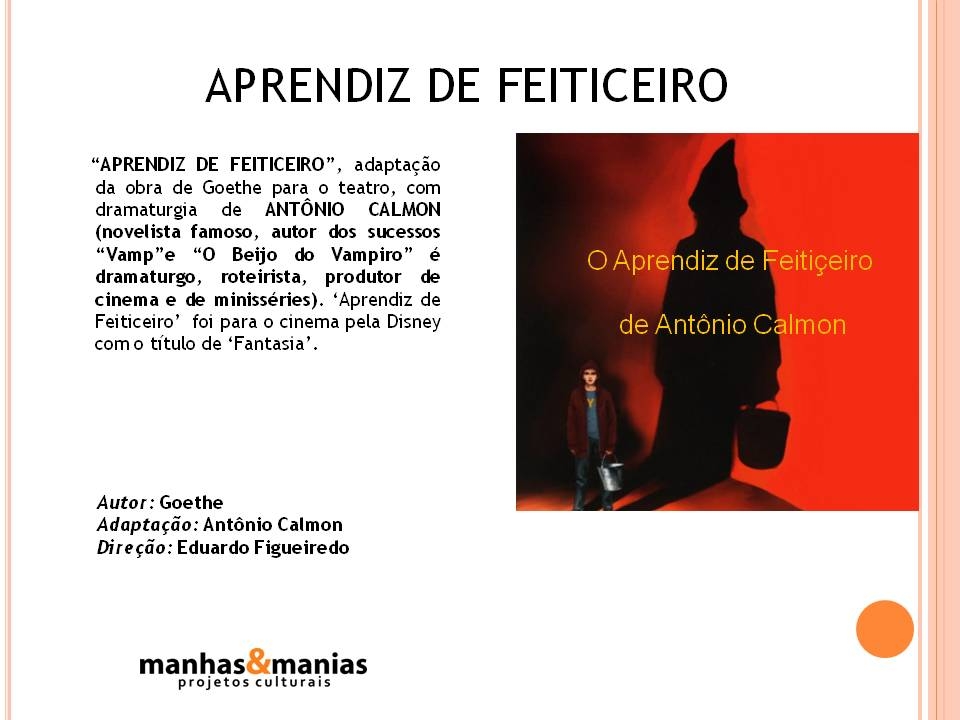 Adaptação do famoso novelista e roteirista Antonio Calmon inspirado na obra de Goethe de “Aprendiz de Feiticeiro”. Com 6 atores de notório reconhecimento nas artes. E conhecidos do grande público, consulte-nos.